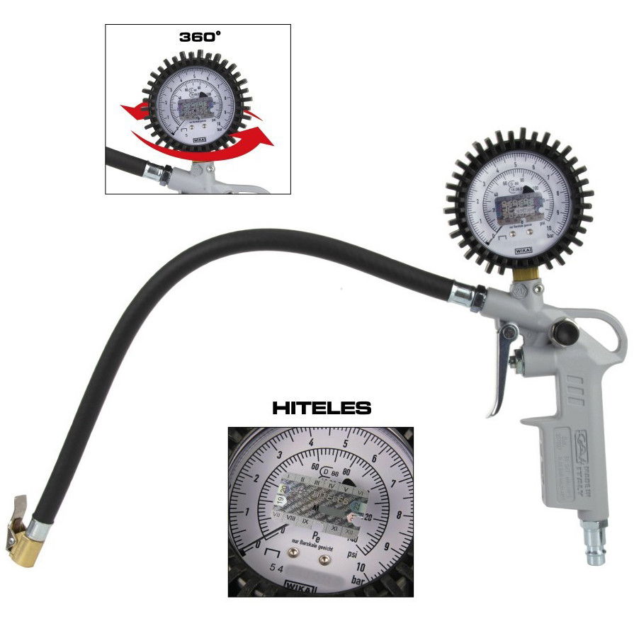 BGS Technic 9-55400 hitelesített, fém gumiabroncs nyomásmérő, kerékfúvató, 0-10 bar *