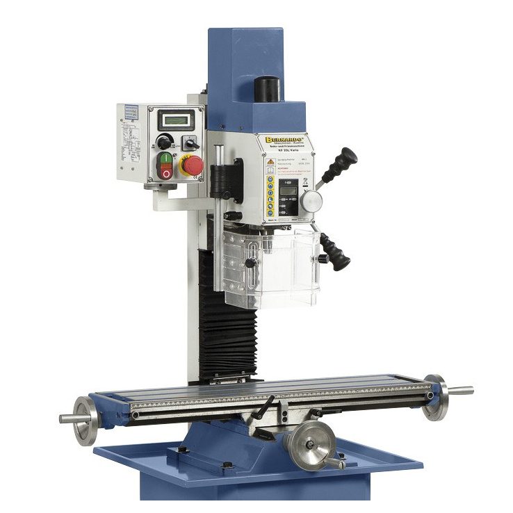 A KF 25 L Vario fúró- és marógép alapkiszerelésben digitális fordulatszám- és szegnyeregemelkedés-mutatóval felszerelt. Ez a modell pótlólag 490 mm-es eljárási távot kínál az x-tengelyen. Ez a gép professzionális felhasználásra, modellezéshez, de képzési területen is ajánlott.